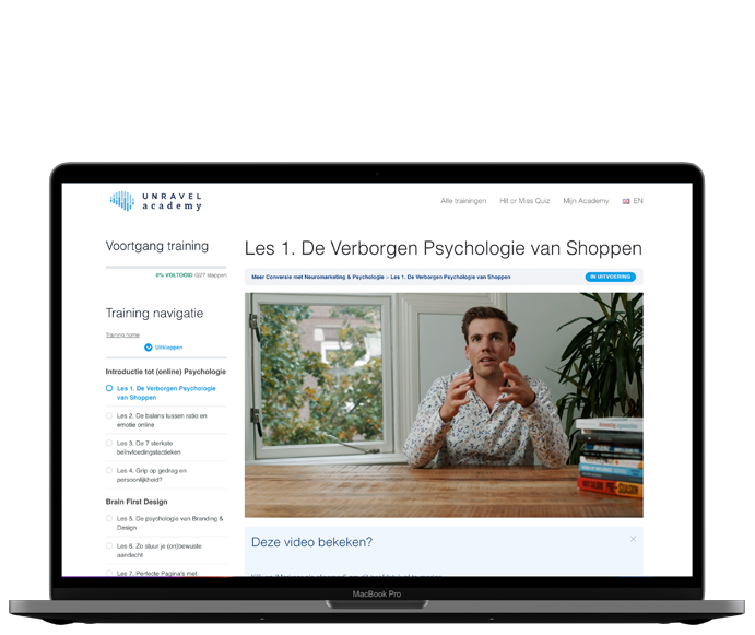 Een ware schatkist aan direct bruikbare kennis dus – en die houden we niet voor onszelf. Unravel Academy helpt je in sneltreinvaart de beïnvloedingstechnieken eigen te maken die voor jouw marketinggebied relevant zijn. Inzichten die je de rest van carrière zult blijven gebruiken.
