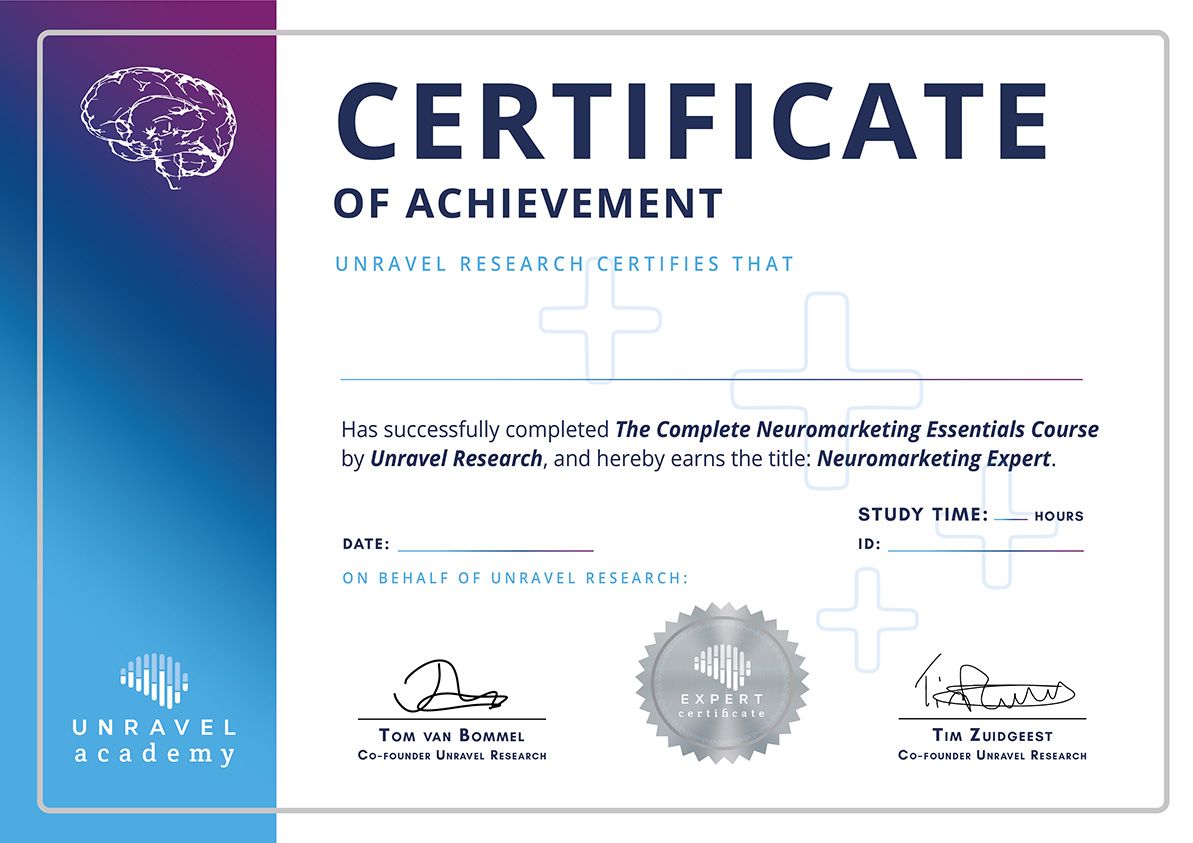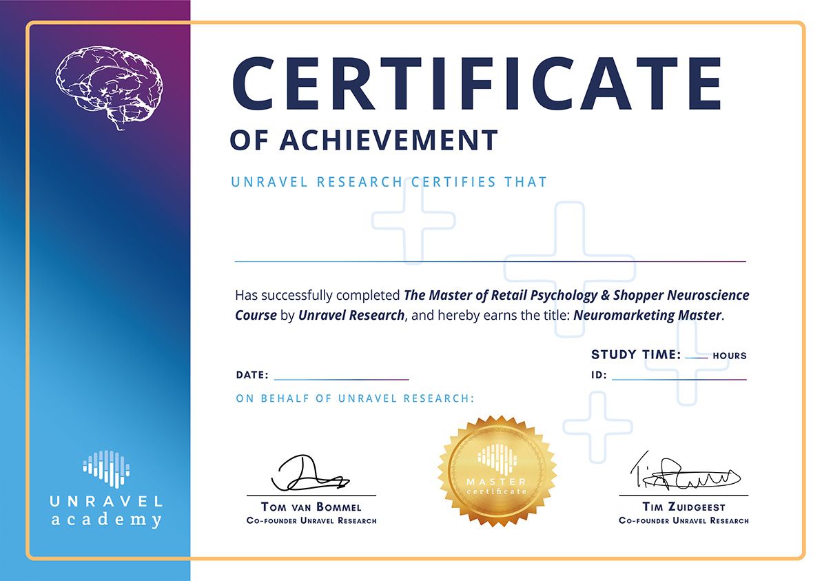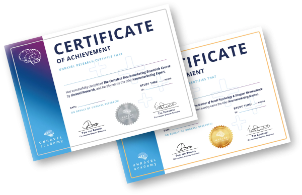Na het afronden van twee van onze trainingen of onze Retail Training ben jij klaar om aan de slag te gaan in het Neuromarketing werkveld en heb jij de titel Neuromarketing Master verdiend.