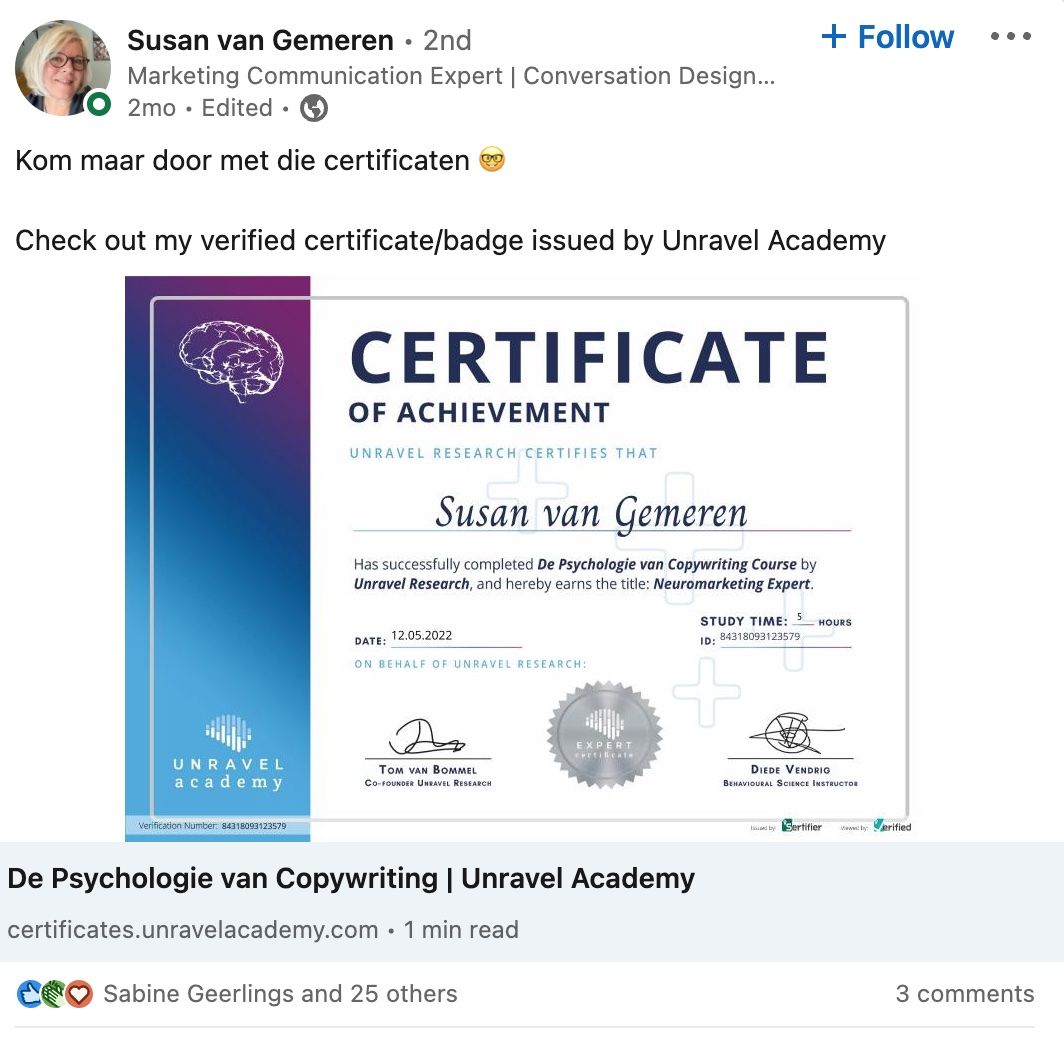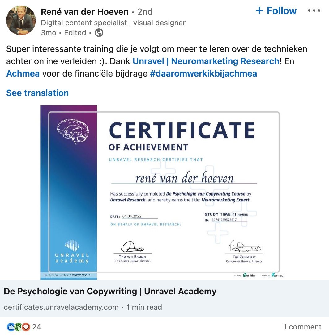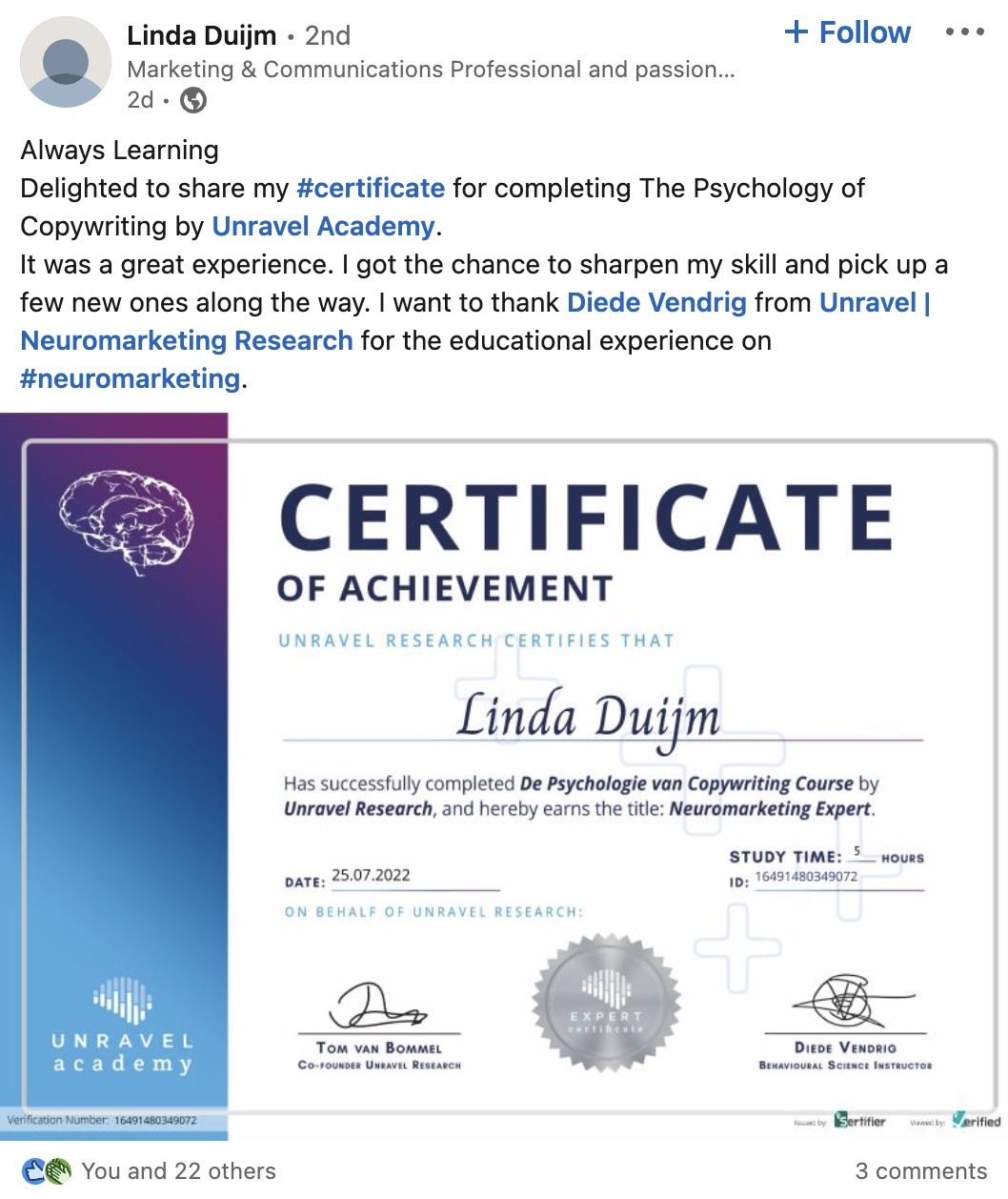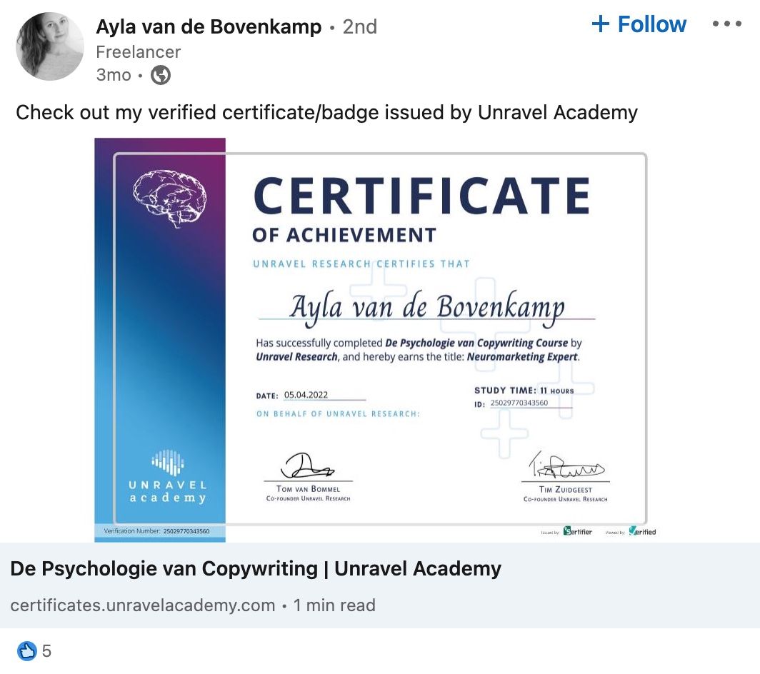 In het volgende artikel lees je precies hoe je jouw certificaat op LinkedIn kan plaatsen.