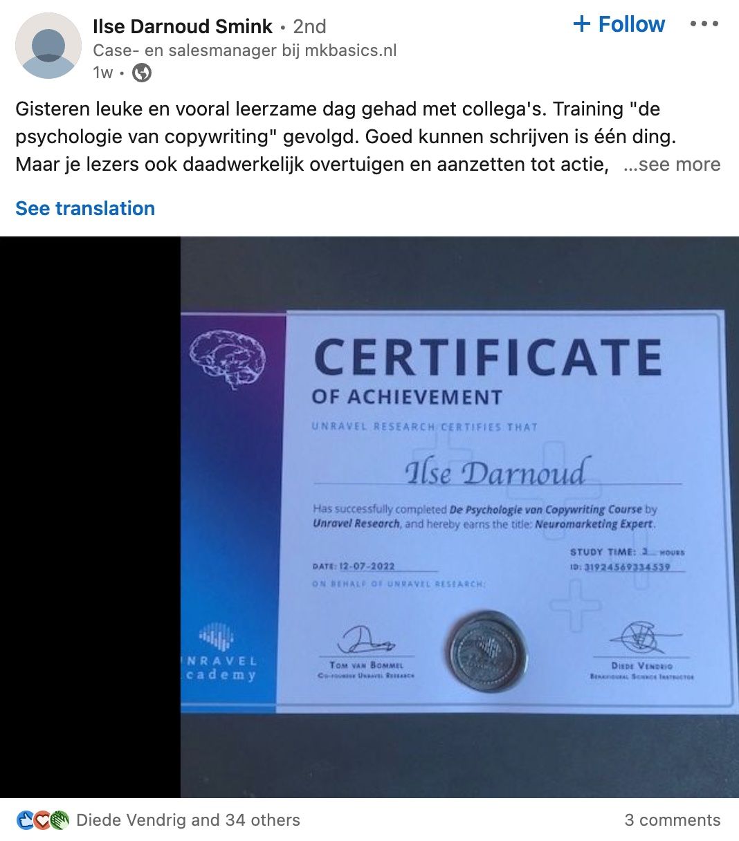 Uiteraard! Slim om je zakelijke netwerk te laten zien dat je bezig bent met het verkrijgen van nieuwe – gevalideerde – kennis.