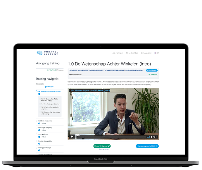 Een ware schatkist aan direct bruikbare kennis dus – en die houden we niet voor onszelf. Unravel Academy helpt je in sneltreinvaart de beïnvloedingstechnieken eigen te maken die voor jouw marketinggebied relevant zijn. Inzichten die je de rest van carrière zult blijven gebruiken.
