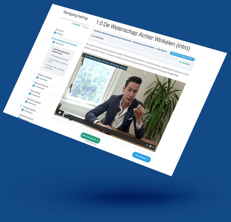 Stuk voor stuk vragen waarop de psychologie en neurowetenschappen kraakheldere antwoorden hebben. Pas de laatste jaren sijpelt die kennis voorzichtig door in de retailwereld. Met deze training wil ik dat in een stroomversnelling brengen: één online training met alle bewezen inzichten die elke retailprofessional moet kennen.